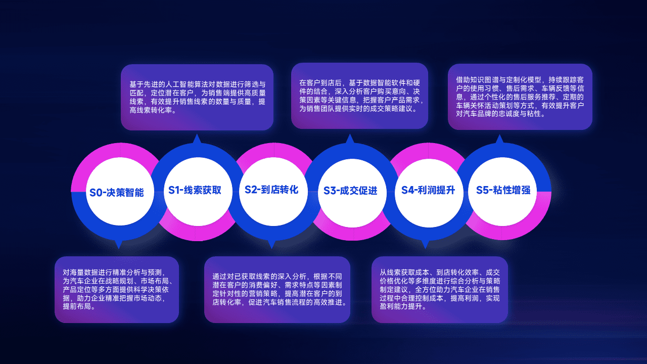 通过拓宽潜在客户来源、、、优化线索分配并提高到店转化率,,以增强销售效率。。同时,,,利用线索数据不断优化分析模型,,有效提升转化率,,扩大营销影响力。。